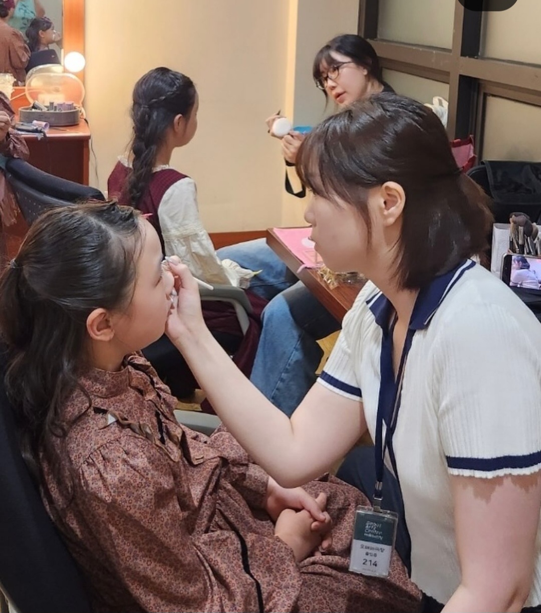 귀여운 어린 친구들에게 메이크업도 해주고 사진도 같이 찍으며
